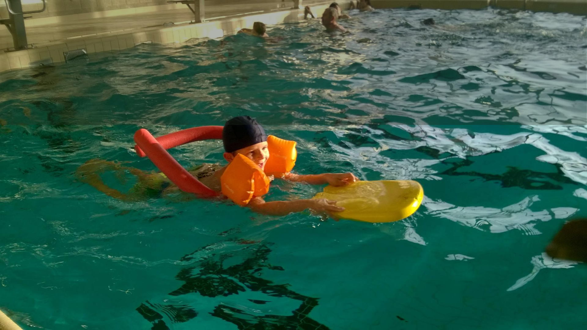 Onze lessen worden gradueel opgebouwd. We gaan van start met het aanleren van ‘schoolslag’. Dit omdat deze zwemslag, nadat je hem hebt aangeleerd, het meest comfortabel is om jezelf in het water voor te bewegen. We leren eerst de beenbeweging aan. Als deze geautomatiseerd is, beginnen we met het aanleren van de armbeweging, om vervolgens beide bewegingen te combineren (het afstemmen van de coördinatie tussen arm-en beenbeweging). We doen dit met de ondersteuning van drijfmiddelen zoals een plank, bandjes, blokjes, een buis… die stelselmatig worden afgebouwd tot de zwemmer zonder hupmiddelen kan zwemmen.